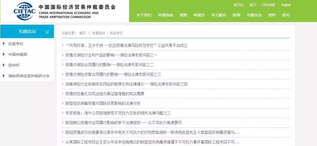 为及时防范新冠肺炎疫情给行业生产经营带来的重大风险,中国国际经济贸易仲裁委员会(简称贸仲委)组织九大重点行业专家小组,针对疫情可能产生的法律问题和争议解决进行调研。目前,调研成果在贸仲委“共克时艰,玉汝于成---抗击疫情法律风险防范专栏”公益共享平台逐一发布。