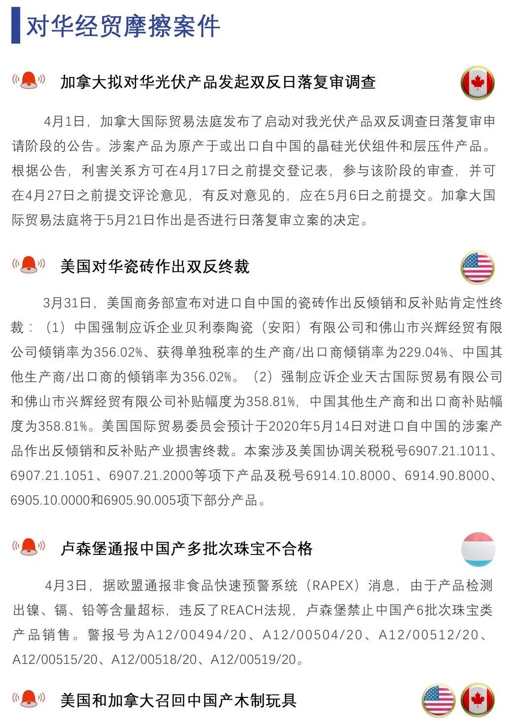最新|4月3日经贸摩擦预警快报