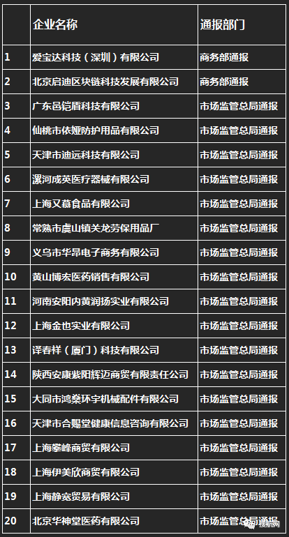 根据中国医药保健品进出口商会,市场监管总局及美国FDA官方已发布的权威信息整理的最新防疫物资出口企业黑白名单!