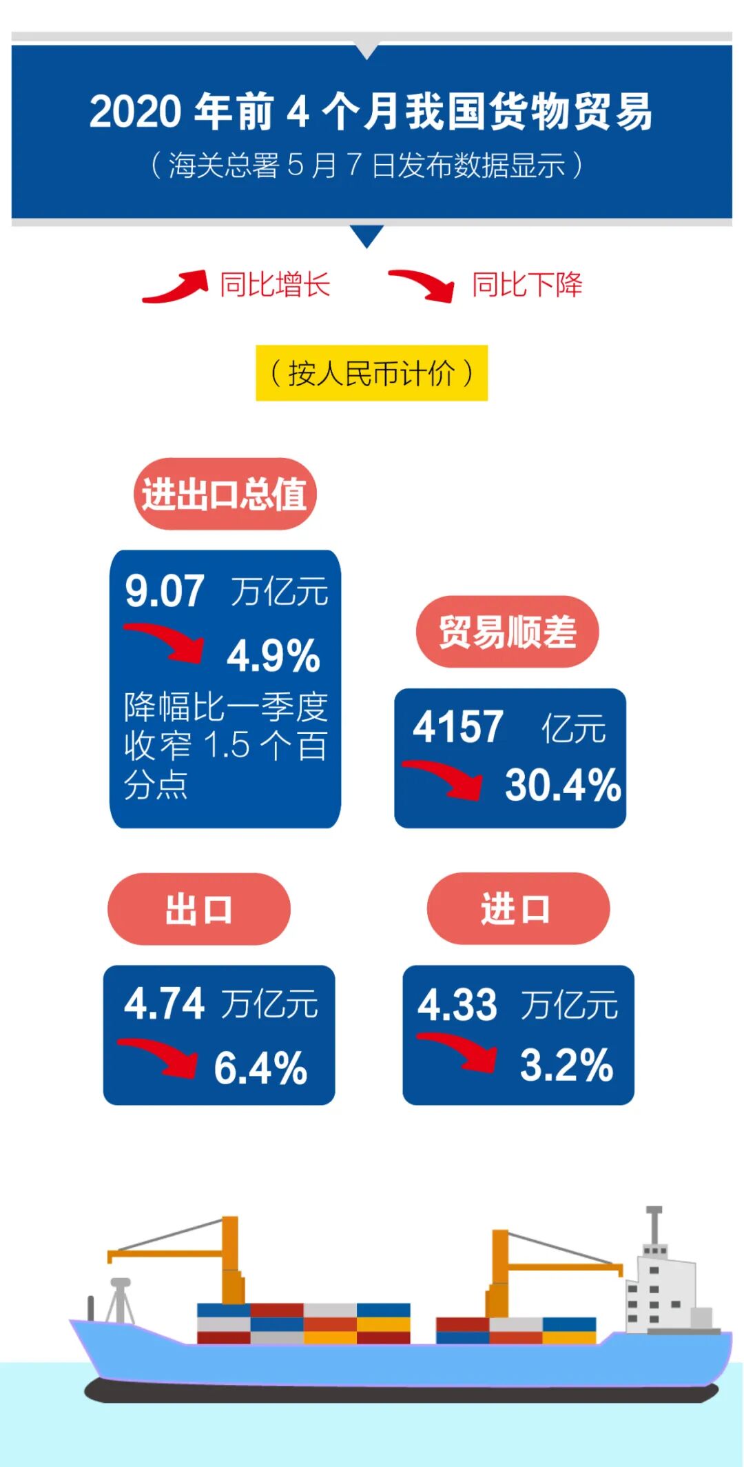 海关总署5月7日公布,今年1至4月,我国外贸进出口总值9.07万亿元人民币。